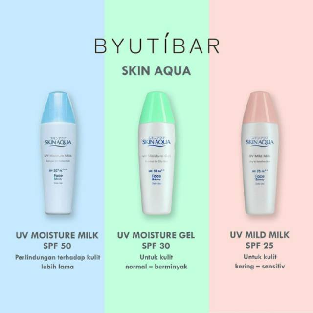 Uv mild milk, uv whitening milk, uv mosturiser milk, uv moisture gel. Skin aqua ini merupakan sunblock keluaran rohto yang diklaim cocok digunakan untuk kulit sensitif dan berjerawat. Sunscreen yang lagi aku gunakan ini adalah skin aqua uv moisture gel, i know kalian pasti udah familiar banget dengan brand jepang yang sering mejeng di drugstore ini, but aku belinya ga di drugstore loh, tapi aku dapet ini dari nihon mart yang beberapa waktu lalu berbaik hati mengirimkan produk ini untuk aku coba :d kalau kalian males keluar rumah buat nyari skin aqua ini, kalian bisa beli di. Sunscreen merupakan bagian penting dari perawatan kulit. Di usia remaja biasanya produksi hormon dalam tubuh meningkat & belum seimbang, dimana kulit kita biasanya cenderung memproduksi minyak berlebih, alhasil wajah di usia remaja pun sering bermasalah dengan yang namanya jerawat. Salah satu sunscreen yang bisa kamu coba adalah skin aqua.simak dulu, 7 info info skin aqua uv moisture gel yang cocok untuk kulit berminyak di bawah ini. Penting untuk menjaga selalu kulit berjerawat dari sengatan sinar matahari dengan bantuan sunblock atau sunscreen. Pemakaian sunscreen secara rutin dapat menghindarkan anda dari berbagai kerusakan kulit akibat paparan sinar matahari. Biore uv aqua rich watery essence spf 50. 10 merk sunblock atau sunscreen wajah terbaik untuk kulit kering. Kalau salah memilih produk, kulitmu bisa menjadi greasy dan terlihat lebih kusam. Harganya sekitar 50 ribuan dan bisa dibeli offline maupun online. Nah, jerawat ini semakin parah bila kita tidak menggunakan sunscreen secara rutin.sebagai pemilik kulit berminyak & acne prone tentu kita harus selektif dalam memilih.